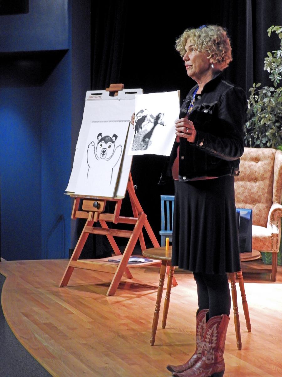 Recently Treehouse hosted children’s book author and illustrator Ashley Wolff for a residency sponsored in part by Utah Humanities as part of their statewide Book Festival. During her residence Ashley visited lucky area schools and worked on an exhibit project at Treehouse you’ll be hearing more about in the coming months. Treehouse staff and Board also hosted a national book launch party for Ashley’s newest book, “Where, Oh Where, Is Baby Bear?” which was released on October 17. This is the third book in her very popular Baby Bear series. Ashley is also the illustrator of the wonderful Miss Bindergarten books and has written and illustrated many, many other award-winning titles. She’s been to Treehouse several times and her mural art adorns many exhibits at Treehouse.