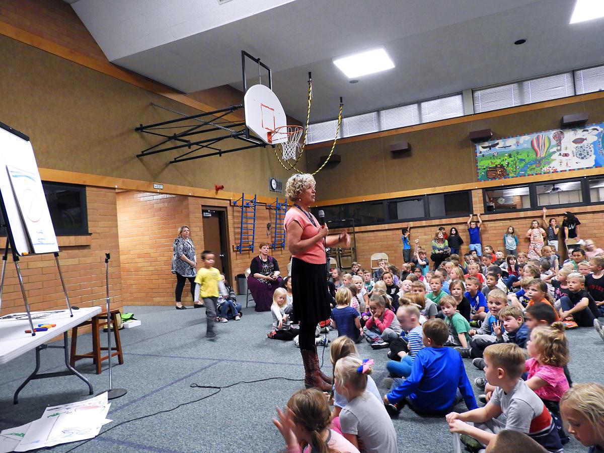 It’s a powerful experience for a child to meet and talk to someone whose books or stories they know and love. Not only do they learn that “regular people” make books and tell tales, but they see the possibility open before them that they, too, could write or draw or perform for others if they work hard enough. Visits with artists like Ashley can be the spark that fires up a child’s creative engine and inspires them to become engaged in the arts. Even if they don’t become children’s book illustrators and authors themselves, that connection to someone like Ashley will ensure that they are fans and supporters of artists and the arts, that they have richness that stories and art can add to their lives, along with the encouragement to become life-long readers and lovers of stories.