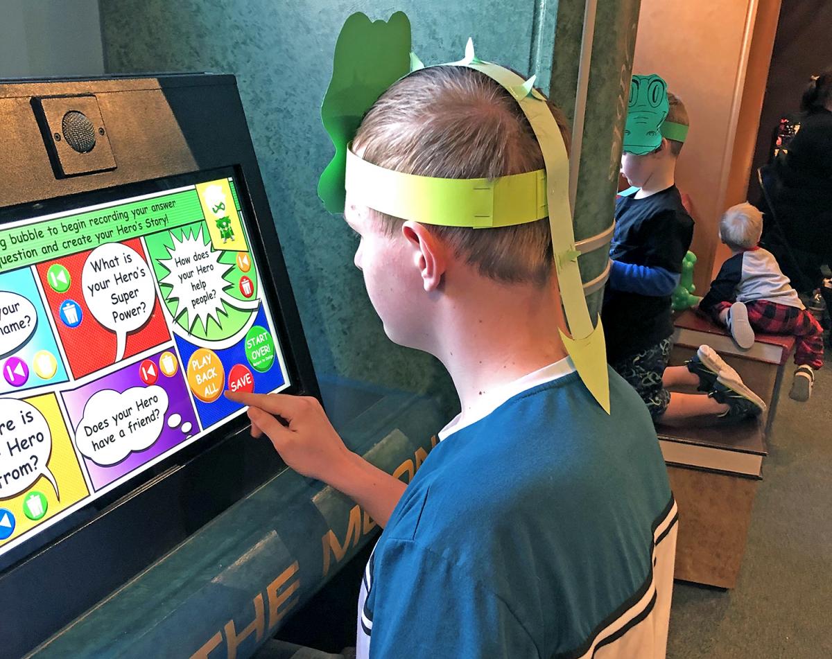Occasionally at Treehouse we have someone (usually an adult) ask why we don’t have “computers and more tech” in our exhibits. Our answer is that we do have some games and activities that fit our exhibits, including our “Make a Hero” and our Walton’s 5 & Dime “Cash Class Registers”, but at Treehouse we think it’s always better to have interaction with people and hands-on exhibits instead of with screens. We want children to engage in imaginative play with other children and with their grown-ups, and too many children log too much time every day looking at a screen.