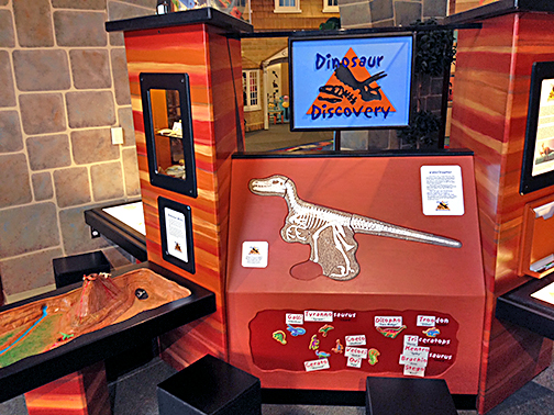 Dinosaur Discovery offers puzzles, tracing stations, and a dinosaur playscape to explore.