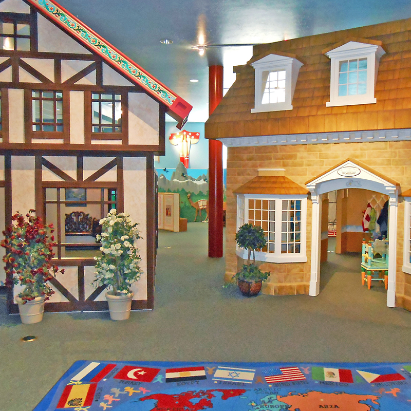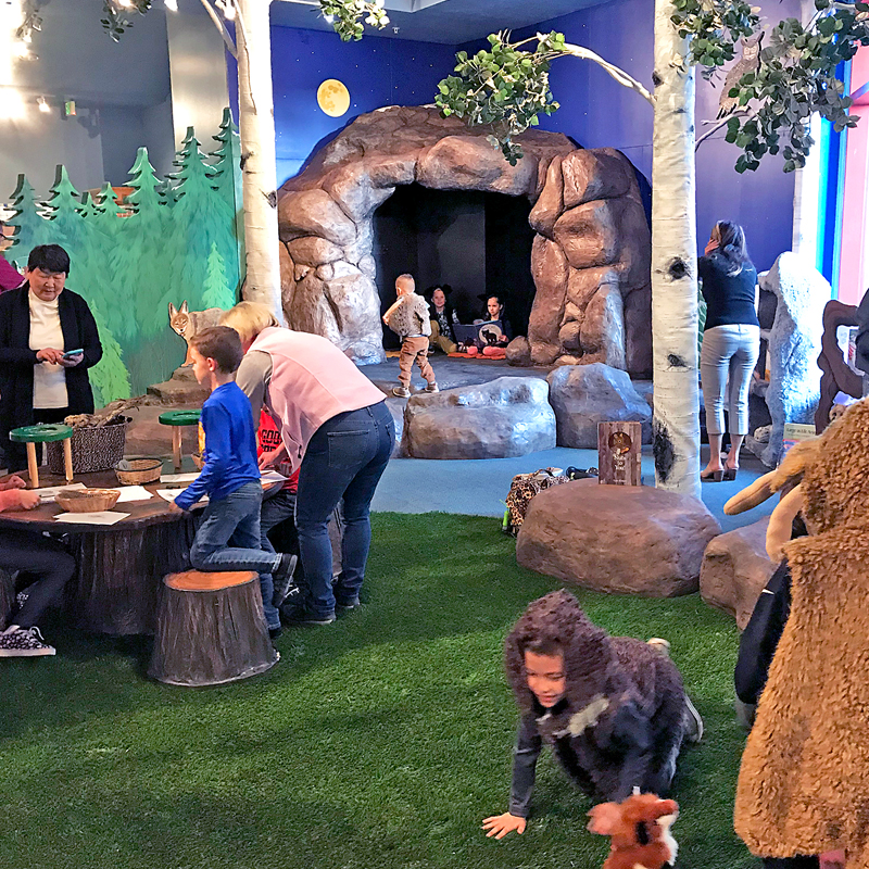 A giant tree grows at the center of the Museum, with themed galleries branching off on two levels. Want Science and STEM activities? Don't miss the Science Circus on the Second Floor with Air Tubes, the Subaru Gravity Race Track, the Quake table, and more. Want to learn about the plants, birds, and animals that live in Utah? Visit our Walk in the Woods gallery on the south end of the second level. Looking for imaginative play spaces? Check out the buildings and activities, including the police and fire station and the diner in our American town. Like history? Then find your way to our Barn and our Farmhouse and even ride one of our hand-carved horses. Like travel? Explore our World Village with houses representing both the countries and the stories children in those countries love. Like maps? So do we! We like really big maps of Utah and America! Want some art in your visit? Don’t miss the Art Garden where you can make your own colorful art, inspired by our favorite children’s book illustrators or traditional arts from around the globe. Don't miss our Simmons Storybook Theater, too, where daily programs happen in the afternoon. Our exhibits are meant to share information and concepts for preschoolers through elementary age children, support the school curriculum, and provide a beautiful backdrop for important play experiences.